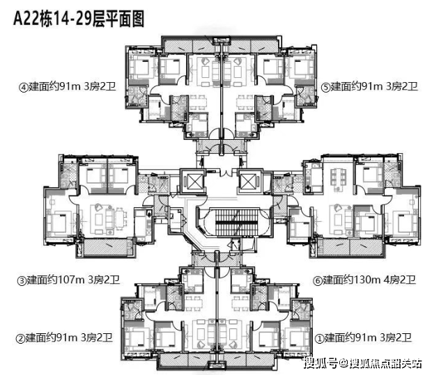 奢阔进阶大四房:128㎡四房两厅两卫,南向阔绰阳台长约6.7米,南北对流,阳光充足。