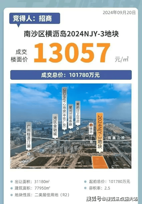 招商林屿境位于广州南沙区国际金融岛,紧邻横沥地铁站E口,直线距离仅约400米。该项目由招商蛇口开发,于2024年9月以底价10.18亿元拿下横沥岛2024NJY-3地块,成交楼面价约为1.3万/平方米。作为南沙首个“超新规”住宅用地,招商林屿境以其创新的设计理念和卓越的生活品质吸引了广泛关注。