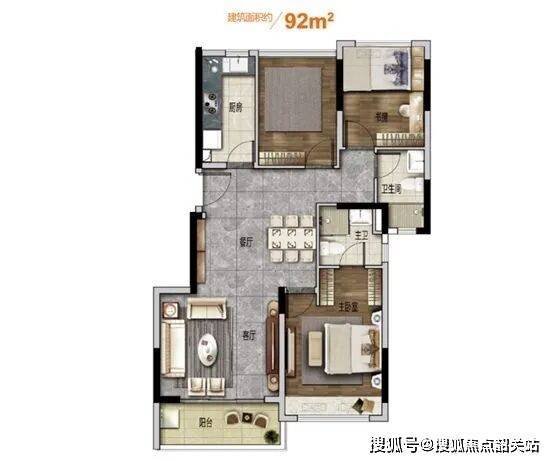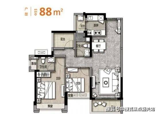 以项目中关注度较高的88平方米三房两卫户型为例,其空间布局的核心亮点在于对“赠送面积”的高效利用,使得全屋实得面积显著增加。该户型设计了南北双阳台,不仅形成了良好的空气对流路径,提升了室内的通风效率,还扩展了家务操作与休闲观景的功能分区。客厅与餐厅采用一体化设计,连接南向景观阳台,使得公共活动区域的视觉进深感得到延伸,即便在家庭成员较多的情况下,也能保持空间的通透与宽敞。主卧套房配备了独立卫生间,保障了居住者的私密性,而次卧与儿童房的尺寸经过精细测算,均能满足床铺、衣柜及书桌的基本摆放需求,避免了紧凑户型常见的局促感。此外,83平方米的三房一卫户型则通过约9平方米的空间赠送,实现了小面积段内的功能完备,双阳台设计同样被保留,确保了基础居住舒适度不打折扣。对于92平方米的小洋房产品,其一梯两户的梯户比配置进一步提升了居住的私密性与尊贵感,4米开间的客餐厅设计让空间气场更为开阔,主卧更额外配置了衣帽间,满足了收纳与更衣的复合需求。