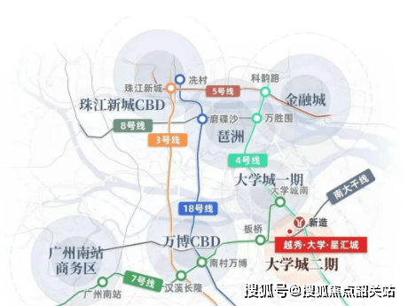 项目距离地铁 4 号线新造站约 1 公里,步行需 15 分钟左右,虽非近在咫尺,但小区内设有楼巴接驳地铁站,弥补了步行距离的不足,使公共交通出行较为便捷。乘坐 4 号线,1 站可达大学城,3 站至万博,4 站抵琶洲,5 站达金融城。经详细测算,地铁前往万博全程约 34 分钟,去大学城约 22 分钟,到琶洲约 34 分钟,至金融城约 39 分钟,均能控制在 40 分钟以内。