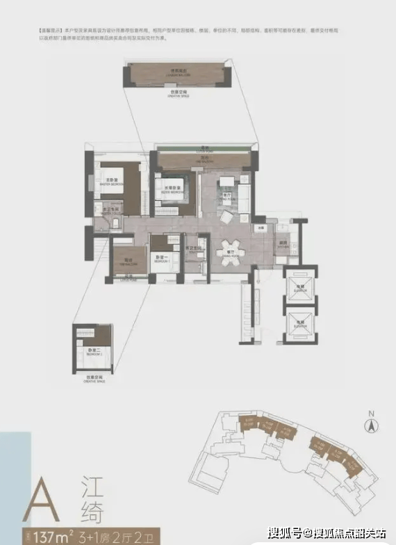 轻奢入门(约137-141㎡):适合年轻精英或首次改善型家庭。3+1房的灵活格局,既能满足三口之家的舒适居住,又能为未来的二胎计划或居家办公预留空间。