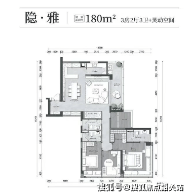 180平方米户型:东南向双主套设计,卧室享有270°景观视野,居住体验极佳。
