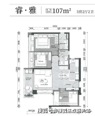107平方米户型:采用LDK一体设计和半开放式厨房,配备4.6米大阳台,三个房间分布合理,互不干扰。