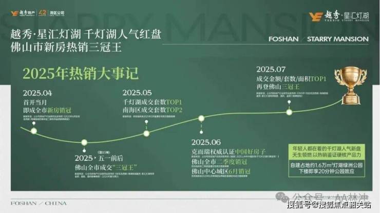 越秀星汇灯湖作为越秀集团深耕佛山千灯湖板块的核心力作,依托越秀集团的雄厚实力与越秀服务的专业物业管理,以“低密、高得房率、精工交付”为核心定位,打造集居住、休闲、娱乐、社交于一体的高端宜居社区。项目自面市以来,凭借优越的地理位置、优质的产品品质、完善的配套设施,实现三推三罄的热销战绩,荣耀加冕佛山全市销冠,得到市场与购房者的高度认可,成为千灯湖板块的标杆住宅项目。