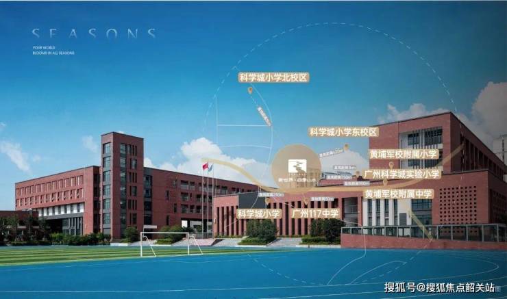 项目自带9班幼儿园,与华南师范大学附属黄埔实验学校(小学+初中)直线距离仅1.2公里,步行15分钟即可到达。该校为黄埔区重点引进的省级名校,2024年中考平均分位列全区前三,师资力量雄厚,教学成果显著。