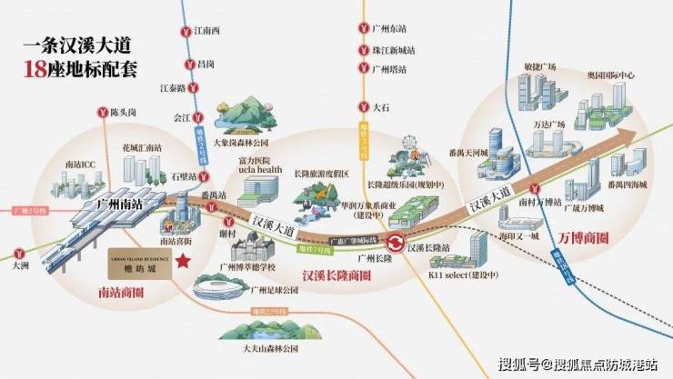 双轨交汇:地铁2号线/7号线广州南站直线距离800米,3站直达琶洲、5站到珠江新城;