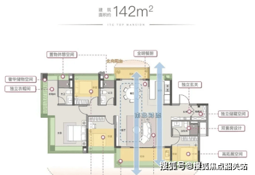 清盘总价约 380-400 万,首付最低 57 万起。核心亮点:南北对流设计(部分户型),客厅与餐厅双阳台通透,空气流通性强;三开间朝南,卧室均带飘窗,居住体验舒适;客餐厨一体设计,公共活动空间达 38㎡,适合家庭互动;实测使用率 102%,实得面积约 103-107㎡,比同面积竞品多 1 个功能空间,适合计划生育二胎的家庭。
