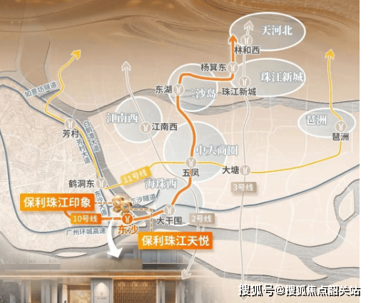 交通配套呈现 “三维立体” 格局:轨道交通方面,距离 10 号线东沙站直线距离 700 米,步行约 10 分钟可达,4 站直达中大,6 站抵达滨江东,通过换乘 11 号线、22 号线可零换乘直达珠江新城;道路交通上,经东沙大道可快速接驳环城高速、东新高速,5 分钟连接海珠西,通过丫髻沙大桥直达海珠核心区;水上交通规划有港湾码头及水上巴士,预计 3 年内完工,未来可实现滨水通勤与休闲出行的双重需求。