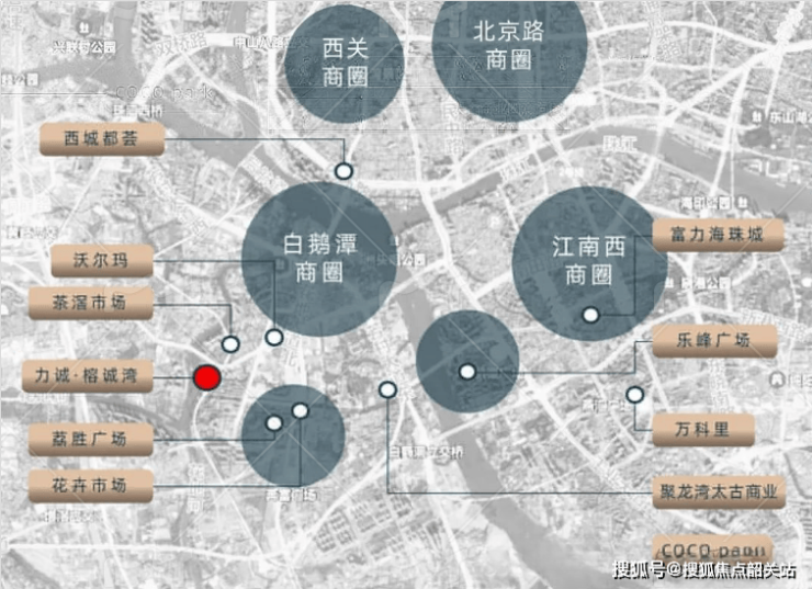商业配套:毗邻6大繁华商业群,包括江南西、北京路、西城都荟等,自带约60万方商业综合体规划。
