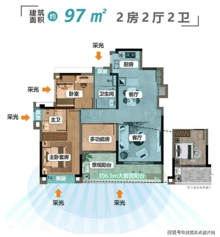 户型选择:目前在售户型覆盖85-168平方米的三四房,主推123栋,特价房源95平三房335万起。