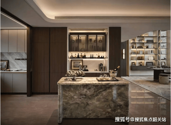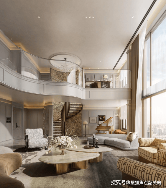公建化外立面:采用大面积玻璃幕墙+铝板及奢石堆砌,塔冠定制玺型符号,彰显豪华气质。