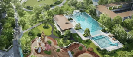 社区内部规划了一轴两环五核心的园林体系,中央草坪面积约1.3万㎡,配有遮阳廊架、休憩座椅和儿童活动区。我在展示区看到,草坪边缘特意做了缓坡处理,小朋友跑起来不容易摔跤;旁边还预留了露营位,周末铺块垫子就能享受湖风。更实用的是那个约2700㎡的定制化会所——恒温泳池、健身区、瑜伽室、亲子乐园甚至私宴空间都配齐了,不用出小区就能满足日常社交和锻炼需求。