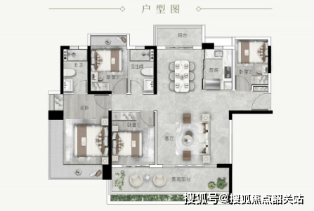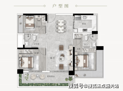 广地花园·观璟主推建面约105㎡三房和133–138㎡四房,均为新规产品,得房率突破100%。以105㎡三房为例,三开间朝南,主卧带飘窗,厨房预留洗碗机位,阳台连通客厅与次卧,采光通风效果不错。交付标准也做了升级:客餐厅铺1800×900mm大板瓷砖,卫生间用2600×800mm岩板到顶,配智能马桶,全屋除厨卫外均预装风管机,细节上比同价位不少项目更扎实。