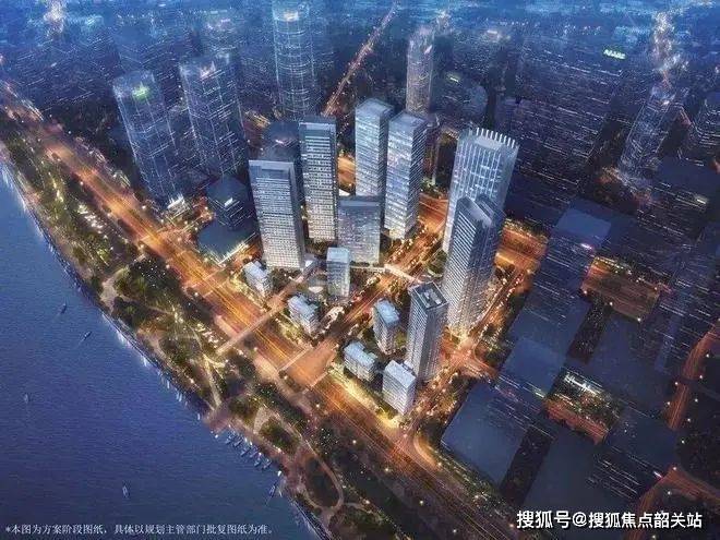 规模:总建筑面积约53万平方米,涵盖写字楼、商业、酒店、公寓及滨江生态公园等六大顶级业态。