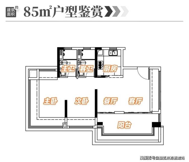 95㎡三房两厅一卫:宽敞明亮,功能分区明确,适合三口之家。