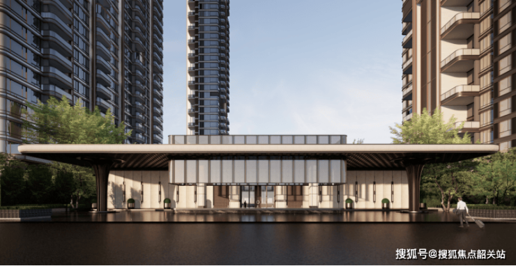 建筑整体采用现代简约风格,南地块以浅灰色铝板与玻璃为主,北地块则强调横向线条的节奏感。两个地块虽独立开发,但通过内部连廊和景观轴线形成视觉呼应。值得一提的是,项目容积率综合为3.33,南地块约3.1,北地块约3.8,在天河核心区属于合理水平,楼间距控制得当,中低楼层也能保证基本采光。