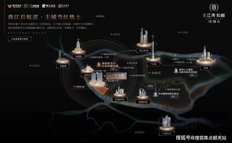 越秀珠实城发·江湾和樾坐落广州五大主城区之一的海珠区,立于珠江后航道,坐拥千年羊城繁华;地处海珠新活力文商旅融合圈之内,低密滨江生活,主城热土,天生瞩目。