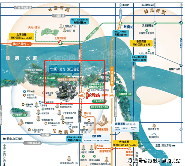 交通,是决定一个楼盘价值的核心要素之一。港龙滨江公园与佛山地铁3号线伦教站实测距离仅约900米,步行即可轻松抵达。搭乘3号线,1站到北滘、3站至大良、9站直达广州南站,30分钟内实现广佛双城通勤。