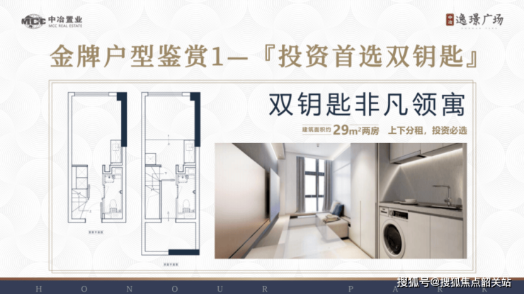 中冶·逸璟广场主力户型包括29-34㎡双钥匙公寓和33㎡复式三房设计,灵活满足自住、投资及共享空间需求。双钥匙设计可一套变两套,实现买一租二的高收益模式,复式布局实现上下分层功能分区,提高居住舒适度和空间利用率。户型整体设计注重通风、采光和私密性,公共动线与生活区域合理分离,兼顾舒适性与实用性。每套公寓均精装修交付,配备现代化生活设施,适合年轻专业人士及新家庭入驻,兼具居住舒适与投资回报优势。