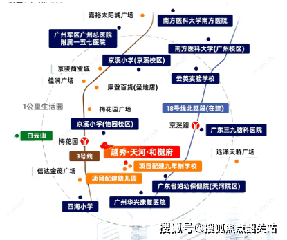 项目与地铁 3 号线梅花园站直线距离约 400 米,步行约 800 米,约 13 分钟可达。搭乘地铁 4 站即可直达珠江新城,无需换乘,便捷高效。此外,附近建设中的 18 号线北延段京溪路站,预计 2026 年底通车,届时前往珠城、琶洲等地将更加便利,进一步拓展了业主的出行范围。