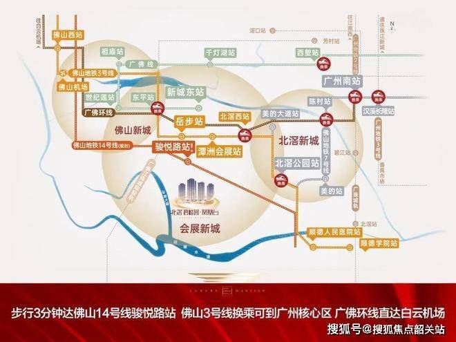 此外,项目还享有佛山14号线、佛山3号线、广佛环线的便利,佛山14号线—骏悦路站(规划中),连接禅城、佛山,距离项目约0.5km,步行约3分钟路程,目前在规划中,建成后可连通佛山3大重点板块禅城、佛山新城、北滘新城;佛山3号线—潭洲会展站,距离项目直线距离约4km,开车约8分钟车程,目前已开通,可换乘轨道交通线路多达13条,其中多条可换乘进入广州,成为佛山轨道线网中最便捷的“南北大动脉”;广佛环线—北滘西站(在建中),2站广州南,5站琶洲,距离项目直线距离约4.8km,开车约10分钟车程,广佛环线北滘站将打造成会展东TOD项目,直达白云机场。