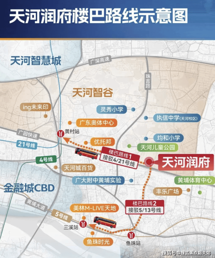 天河润府构建了“楼巴+地铁+主干道”的立体交通网络,破解城央通勤难题。作为市中心首个配套楼巴的社区,项目将在交付后5年为业主提供免费服务,两条定制路线分别接驳地铁4/21号线黄村站与5/13号线鱼珠站,实现3站到金融城、7站达珠江新城的高效通勤。