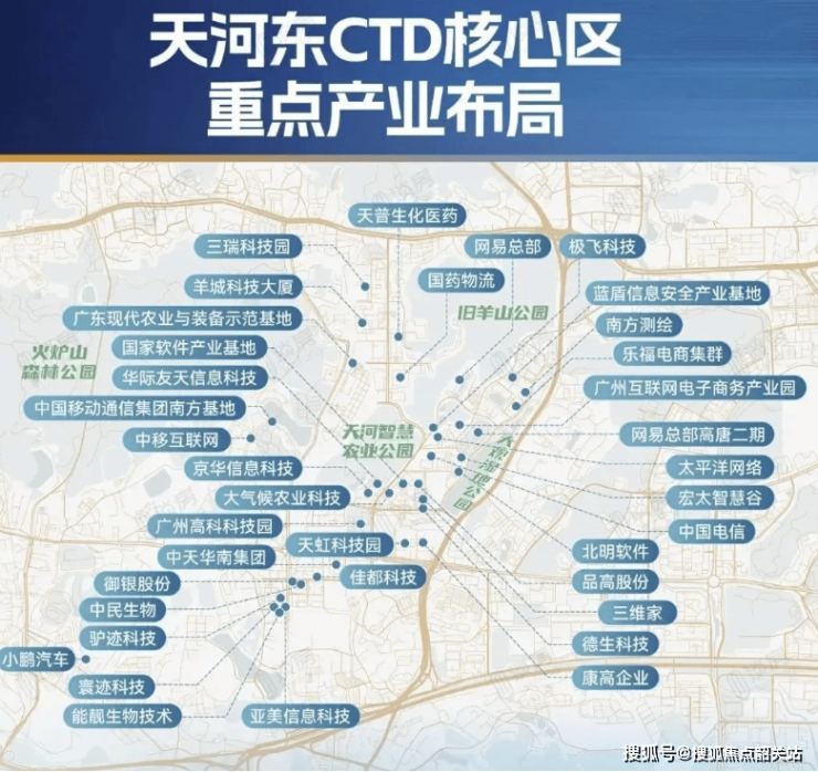 天河润府坐落于天河智谷,地处广州科技中轴的中央科创区(CTD),与珠江新城、金融城CBD形成“双核驱动”格局,是湾区战略中科技创新与产业升级的关键节点。区域内汇聚网易、中国移动、小鹏等2500多家高新企业,总年产值预计达1100亿,形成以5G、人工智能、高端软件为主导的产业集群,成为广州第四增长极。