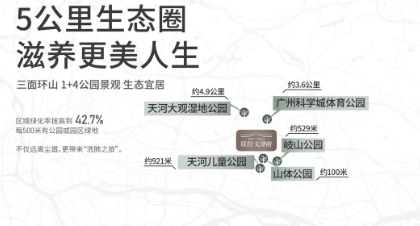 外揽“1+4公园”生态格局,周边有山体公园、天河区儿童公园、岐山公园、天河大观湿地公园、广州科学城体育公园等多个生态景观资源,涵盖山体、湿地、休闲等多种类型,为业主提供了充足的休闲与运动空间。业主闲暇时可前往公园散步、健身、野餐,或是带着孩子在公园嬉戏玩耍,感受自然的惬意与美好;周末可与家人一起前往天河大观湿地公园,欣赏湿地风光,放松身心,在繁华都市中寻得一份自然静谧。