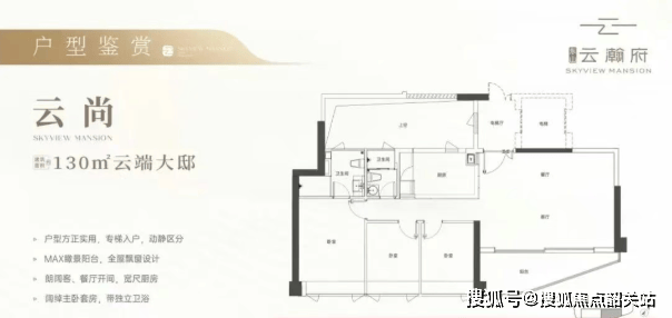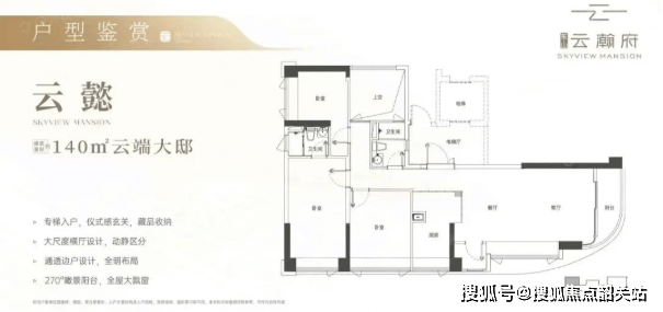 140㎡南向4房:六开间朝南,面宽突破17米,四面采光,单边户设计保障私密;