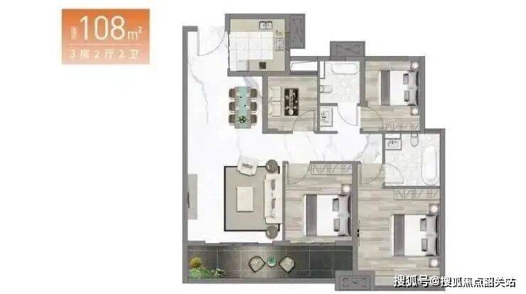 四房户型108㎡,容得下二胎时代三世同堂,幸福一步到位。6.8米景观大阳台,主卧独立衣帽间,多变空间可改造大横厅舒适三房。