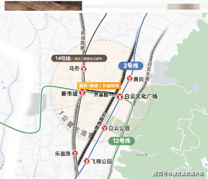 除了2号线和12号线,项目距离14号线二期新市墟站也仅约800米。14号线二期建成后,将有效缓解现有线路的拥堵状况,并进一步拓展白云新城的辐射范围。通过这条线路,业主可以快速抵达从化、增城等远郊区域,实现跨区通勤的无缝衔接。