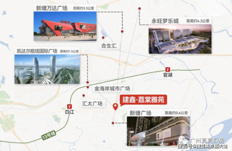 项目距离新塘地铁站约1500米,从项目走到地铁站,步行约20min。地铁站门口有很多共享单车和电动车,也可以使用交通工具接驳,路程会更快。新塘站是13号线的第三个站,即使是高峰期,还是有机会抢到座位的,通勤的幸福感会更强。13号线直达鱼珠商务圈,5号线转乘到珠城,总耗时约43分钟,对于现在广州打工人来说,是可以接受的通勤时间。