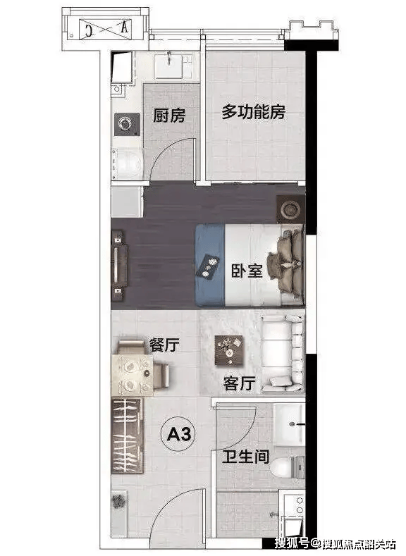 1. 46.22㎡轻奢平层:小户型大作为