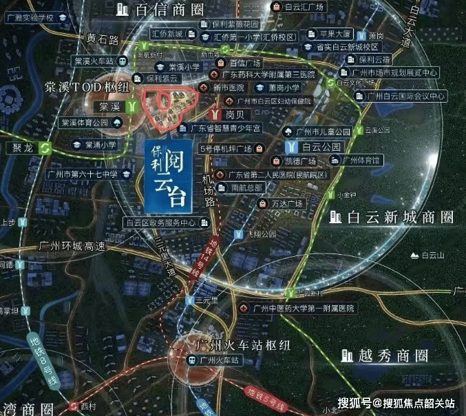 保利·阅云台傲踞于白云TOD现象级综合体,拥有1轻轨、2高铁、7地铁编织的立体交通网络,构成了440亿投资铸就的产城融合范本。该项目不仅聚合了商务、教育、商业、居住全维生态,还引领着枢纽经济新时代的到来。优越的地理位置使得这里成为了湾区心脏和TOD城市样本。