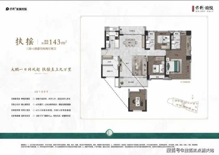 建面约100㎡南向四房:LDKB设计布局,容纳全龄万般想象;约6.1米瞰景阳台,突破从容生活边界;主卧270°飘窗Plus,四季瞰赏风景。