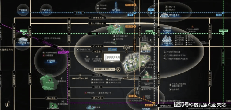 A:项目距离地铁22号线市广路站直线约1公里,门口设公交总站,自驾10分钟达万博CBD,25分钟至琶洲,30分钟直达珠江新城,交通网络覆盖全城。