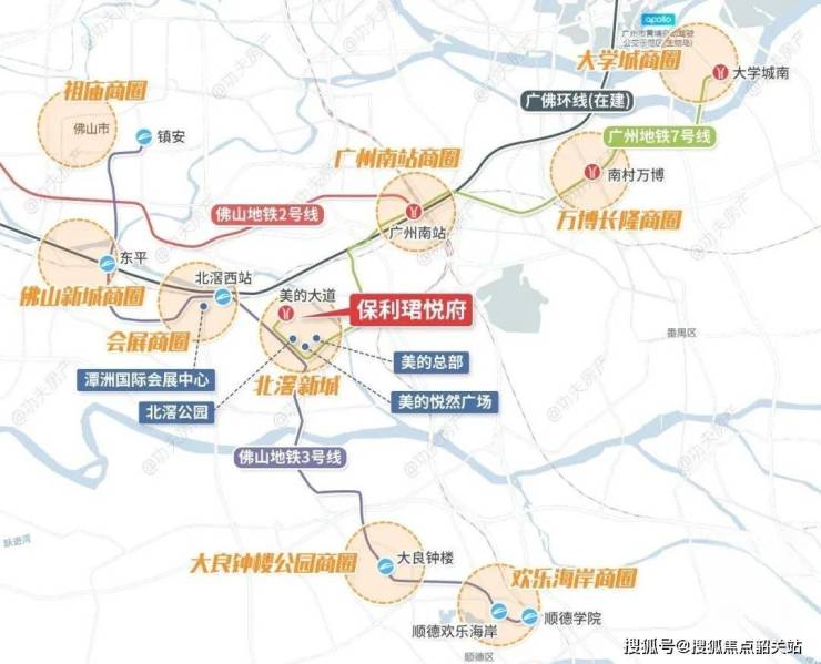 保利珺悦府位于广佛交界区域,交通条件极为优越。项目距离广州地铁7号线美的大道站仅数百米,未来可快速通达广州南站、番禺万博、汉溪长隆、广州大学城等地,实现广佛半小时通勤生活圈。同时,项目可通过换乘佛山地铁3号线,串联大良、佛山新城、季华商圈等核心区域,提升区域联动性。道路方面,项目周边路网成熟,临近广珠西线高速、佛山一环等主干道,快速连接佛山多个重点板块。作为北滘新城的重要住宅项目,其交通优势显著,尤其适合在广佛双城工作生活的通勤人群。