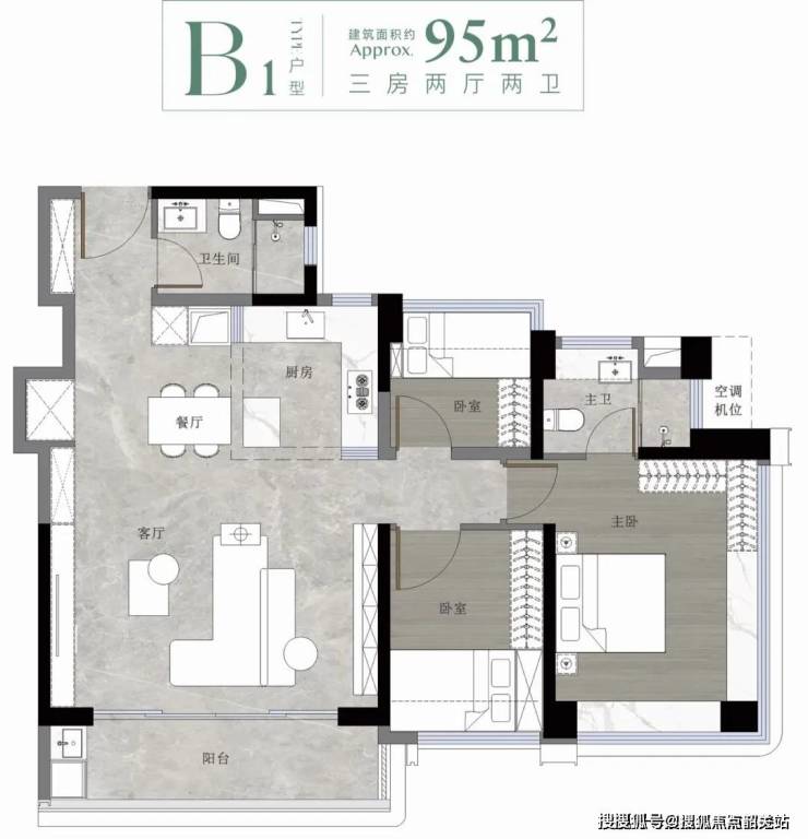 78㎡户型:南北对流+双阳台设计,主卧带飘窗,实得面积约72㎡;