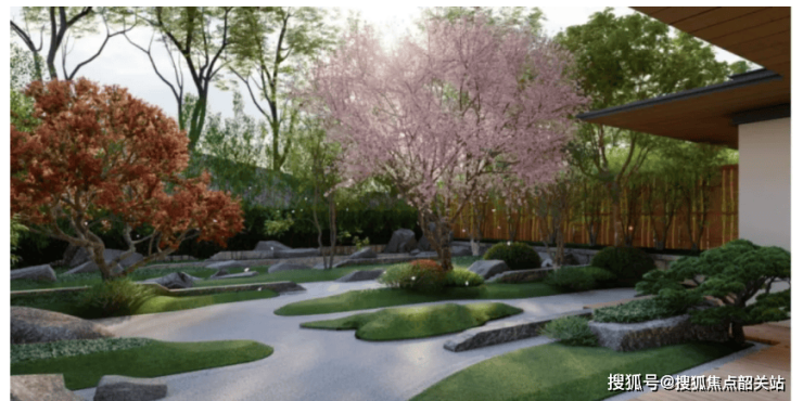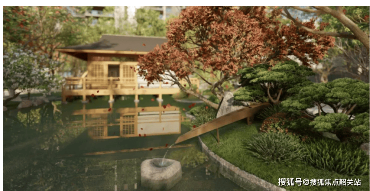 “四谷”设计:四季分明,步移景异:园林以楼栋区隔,以四季命名,分为春之谷、夏之谷、秋之谷、冬之谷,每个谷区种植代表对应季节的树株,谷转景移,每到一处都有独特的自然气息。春之谷种植樱花、桃花等,春日繁花似锦;夏之谷种植荷花、柳树等,夏日清凉惬意;秋之谷种植丹枫、银杏等,秋日层林尽染;冬之谷种植黑松、梅花等,冬日傲骨凌霜。
