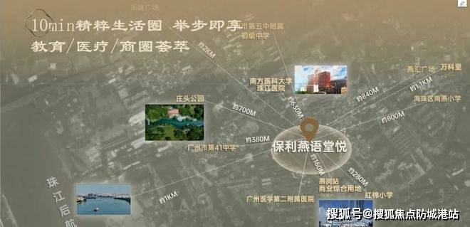 2. 教育资12班幼儿园+24班九年一贯制学校,已签约引入广州市执信中学教育集团(省一级资质)。周边3公里内还有海珠区实验小学、六中珠江中学、南武中学等名校,形成“幼小初高”全龄教育链。