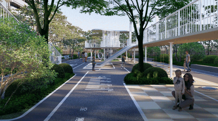 小区中央草坪面积约2000㎡,配有遮阳廊架和休憩座椅,是居民放松心情、亲近自然的好去处。大壮名城·名门规划了约2.5万方园林,相当于3个国际足球场大小,设计上采用了“3D立体度假园林”的理念,让业主下楼即能体验到高阶生活品质。无论是儿童游乐区还是运动健身空间,都旨在满足全龄段业主的需求。