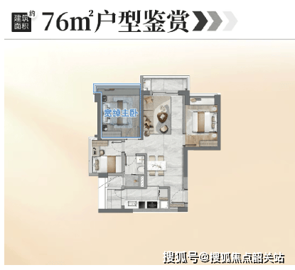 约76㎡产品,做到了真三房的功能配置,在同面积段中具备明显的空间利用率优势;