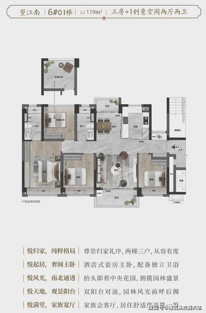 6#01梯 建面约119㎡ 3+1创意空间 两厅两卫