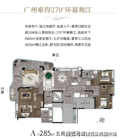 虽项目体量不大,仅规划一栋 18 层高的建筑,共 68 套房源,但胜在位于星河江缦及二手豪宅珠江鹅潭湾之间,圈层纯粹高端。仅打造 193㎡和 285㎡两种江景大平层户型,且均为专梯入户,保证业主居住的私密性与尊贵感,形成一个纯粹的高端居住圈层,满足业主对高品质生活和圈层社交的需求。