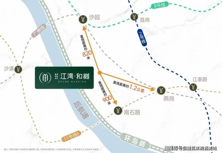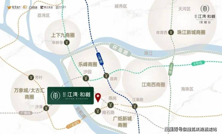 江湾和樾地处海珠西部交通枢纽位置,步行约800米可达地铁8号线沙园站(换乘广佛线),1.2公里内覆盖广佛线燕岗站,同时距离在建的广州首条环线——11号线南石头站仅约900米。未来11号线通车后,将实现30分钟内直达天河、琶洲、金融城等核心商务区。