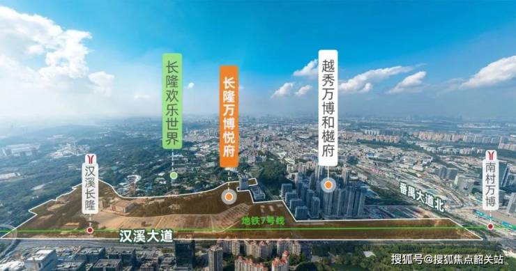 华润万博悦府位于番禺万博板块,在番禺大道和汉溪大道的交汇处。项目的西侧靠近长隆度假旅游区,东侧就是万博商务区。