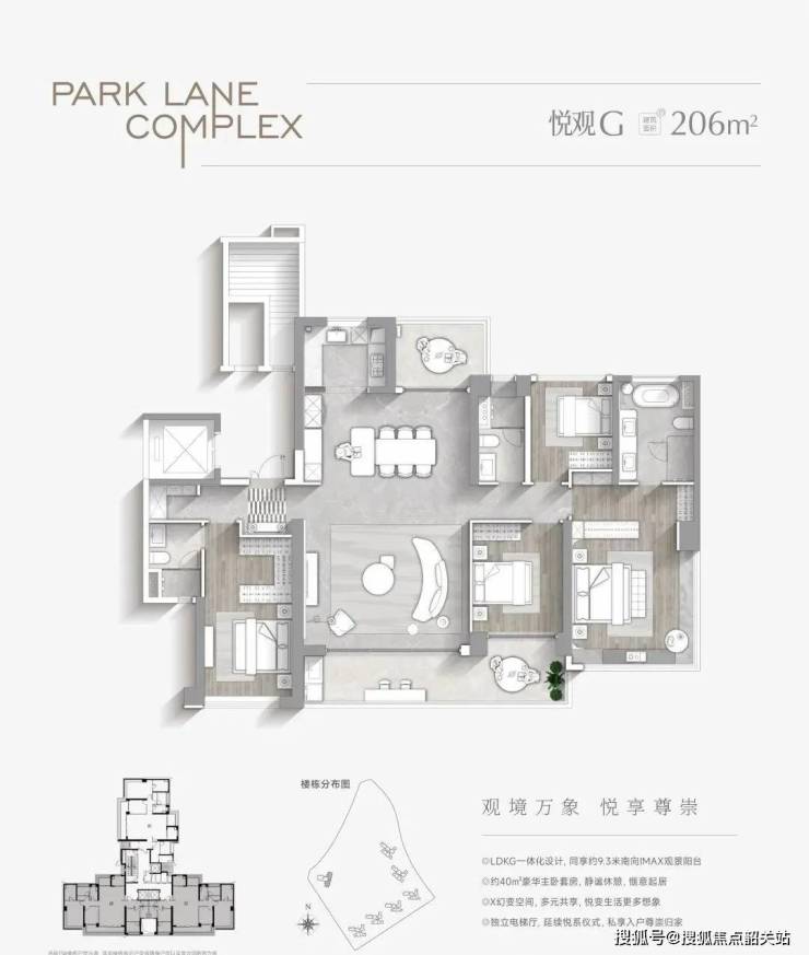 建面206㎡,一层虽然共有三户,但是每户带独立电梯厅,南北对流设计,南向阳台长约9.3米,13栋直面长隆欢乐世界景观非常好,双主套。