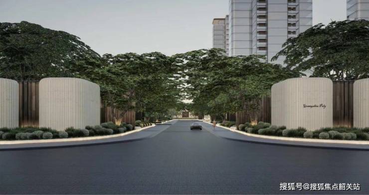 保利天奕长达88米高约9米的大门徐徐展开迎接业主落客归家,形成足够奢阔尺度并且能够彰显名门气度。