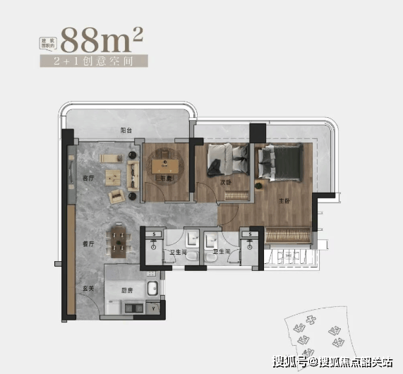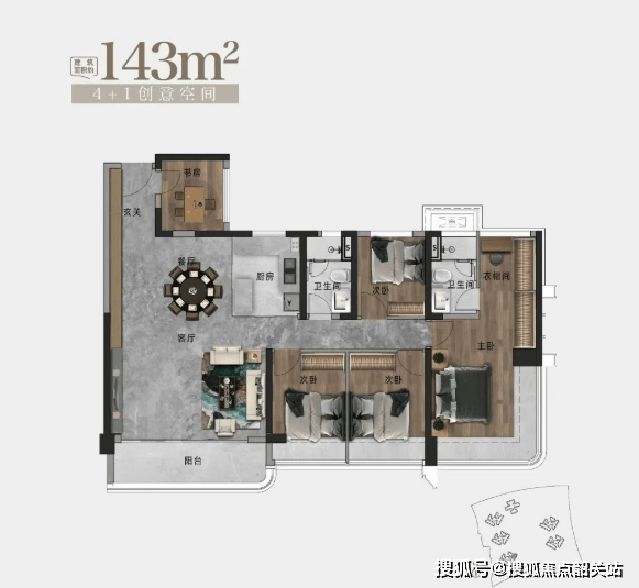 主力户型涵盖88㎡、105㎡、122㎡、143㎡四大面积段,全部标配: