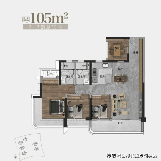尤为难得的是,即便最小的88㎡户型,也做到四开间朝向一致(如西南或东南),且书房尺寸合理,可灵活改造为儿童房或多功能空间。而105㎡及以上户型,四开间朝南比例高达90%,真正实现“阳光满屋”。
